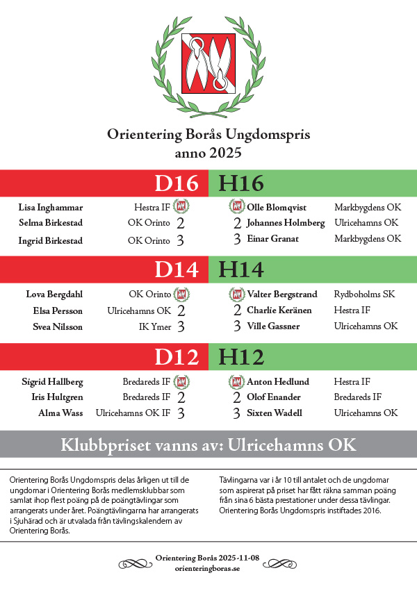 | Resultat Orientering Borås Ungdomspris 2025 |