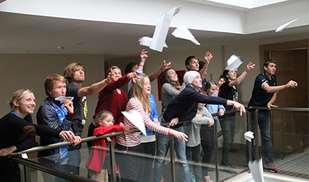 Efter dusch och lunchbuffé på hotellet får vi än en gång klart för oss vilka tävlingsmänniskor landslaget består av. Utanför rummet har några rastlösa löpare påbörjat en pappersflygplanstävling som genom glada hejjarop lockar till sig allt fler deltagare och åskådare. Allt slutar med att hela svenska truppen, hotellstäderskorna och ett gäng andra hotellgäster engagerade i tävlingen. Mycket skoj!